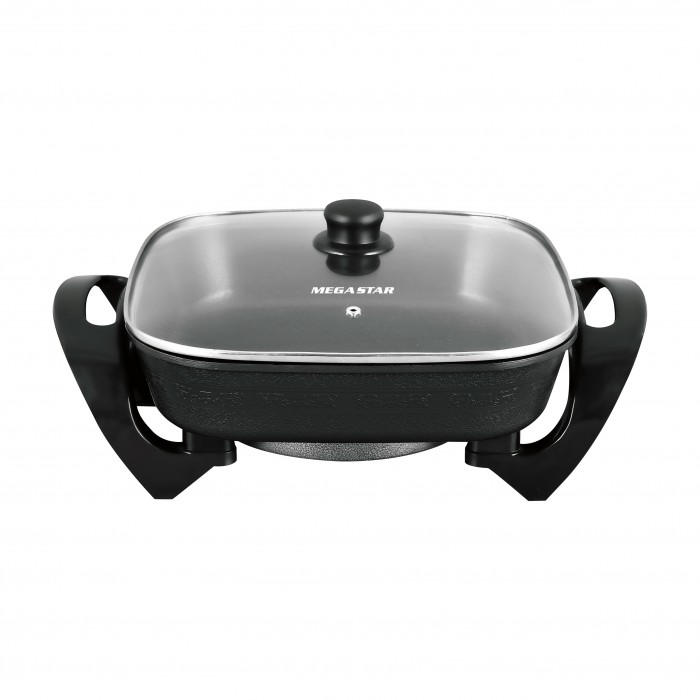 -Termostato hasta 240°C--Recubrimiento antiadherente Tapa de vidrio con orificio--Tamaño: 33cmPotencia: 1200W-Voltaje: AC 220V~50/60Hz