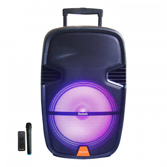 PARLANTE KARAOKE 15" BATERIA 1 MICROFONO INALAMBRICO/BT/CARPETA/FM/USB/LUCES