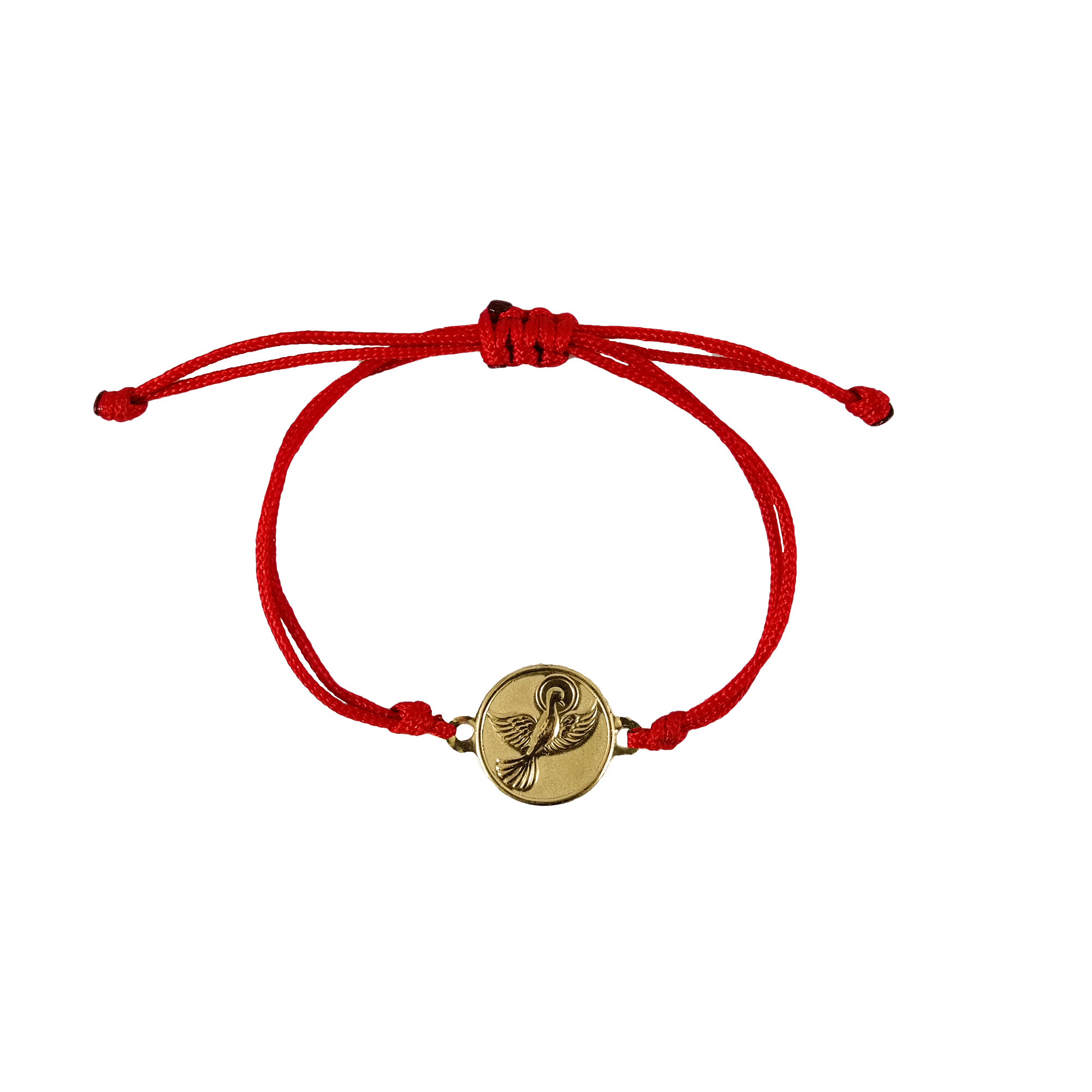 PULSERA DE HILO ROJO CON MEDALLITA RELIGIOSA EN ORO, ESPÍRITU SANTO VOLADOR