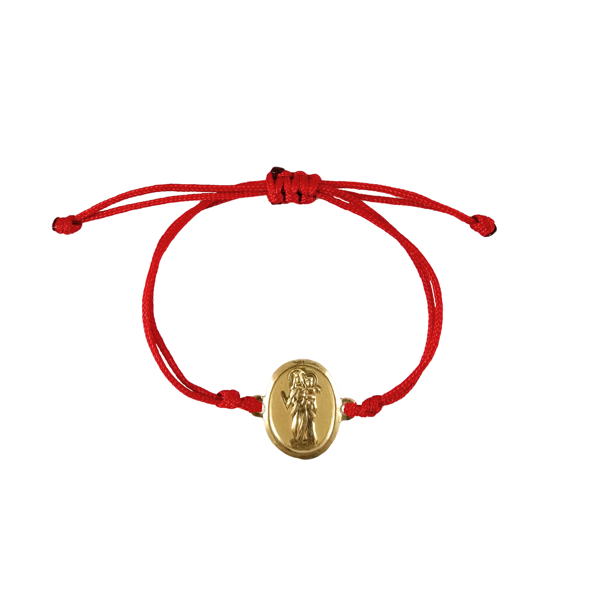 PULSERA DE HILO ROJO CON MEDALLITA RELIGIOSA EN ORO, MARÍA AUXILIADORA